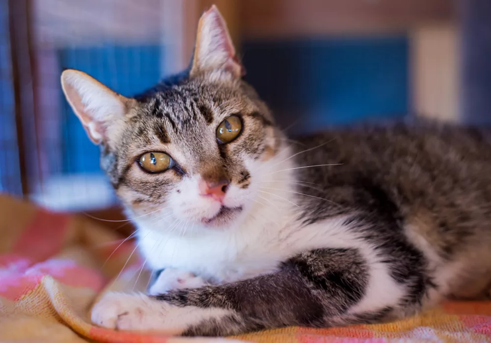 But patience and hard work won out and slowly, little victories were spotted each day. She was managing to turn herself over onto her preferred side (always the right side) and she was eating well. Food is always a good motivator, so volunteers started to put her food further away to encourage her to make her own way to it. Physio was combined with 30-minute massages at least 5 times a day to strengthen her muscles and the simple solution of a non-slip mat helped give her better grip as she learned to walk again. And there were celebrations all round when she managed to use her litter tray for the first time! At last, the deep-cleaning and bathing regime could be scaled back a little!