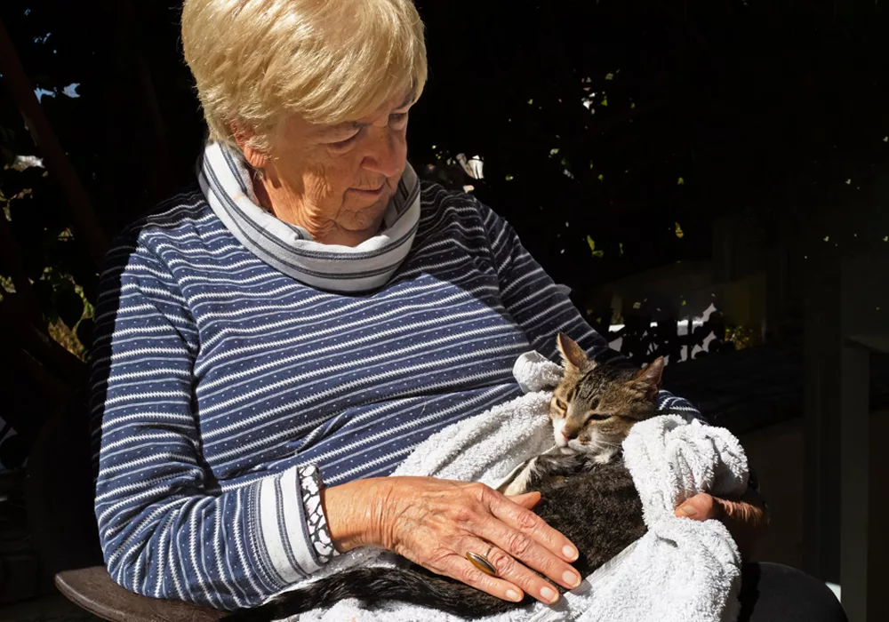 So started a regime of physiotherapy three times a day, based on an instructional video from the vet and our volunteer’s own research into other techniques. Aside from the physiotherapy, Savma also needed help with toileting, as she was doubly incontinent, and help with eating. So it was a full-on care package of daily cleaning, bathing and physio for weeks, made trickier of course, by the fact that Savma was a street cat and not totally happy being around humans or appreciative of their attempts to help her!