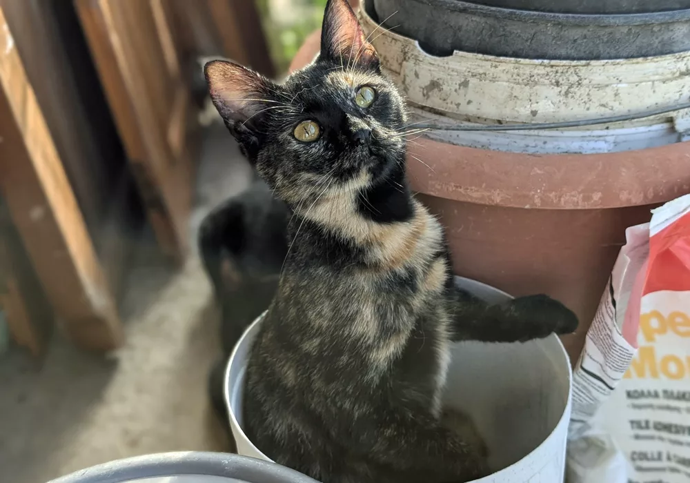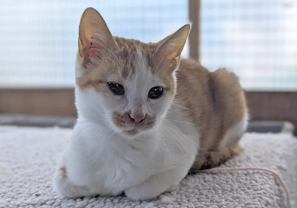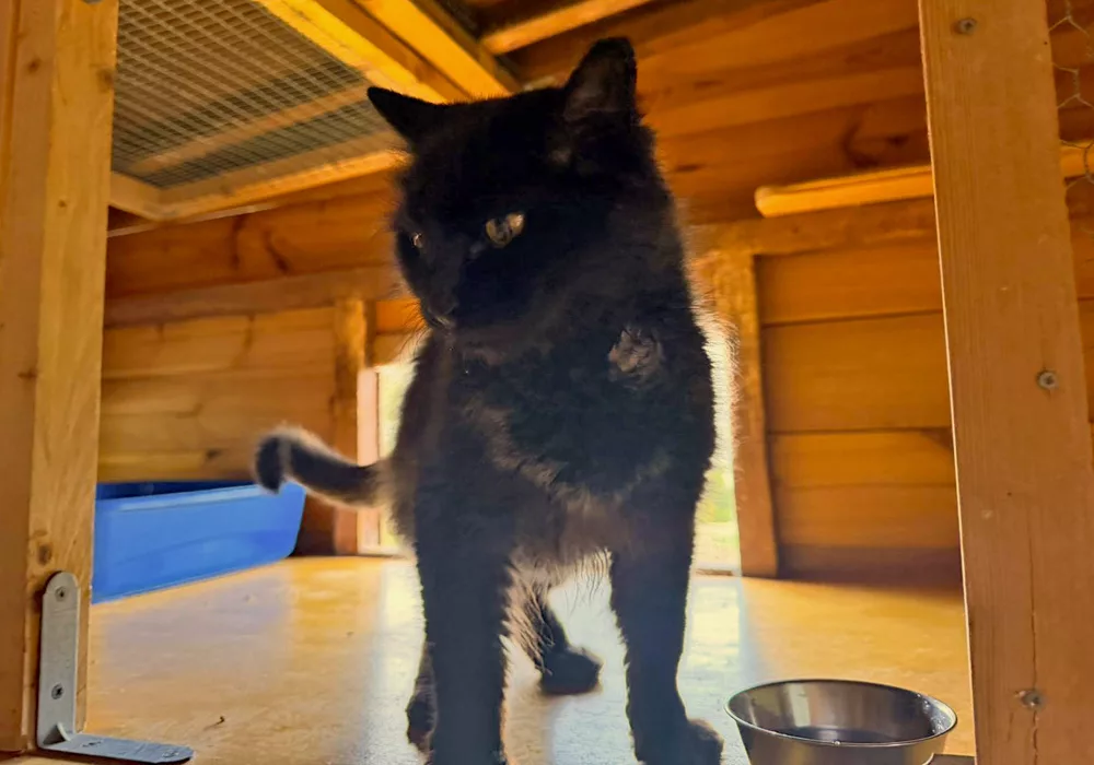 Peanut came into our care in late 2024. She’s a very outgoing, lovable cat with an adventurous spirit. She loves the garden, chasing insects and getting involved in everyone’s activities, whether you really want her to or not. Like Bertie, Peanut has recently arrived at her fabulous furever home in Sweden, at stables with horses and other cats for company – plus humans, of course to see to her every need. She has already been exploring the cosy indoor spaces and making friends with the horses. It’s the perfect setting for this fun-loving girl and we wish her much happiness.