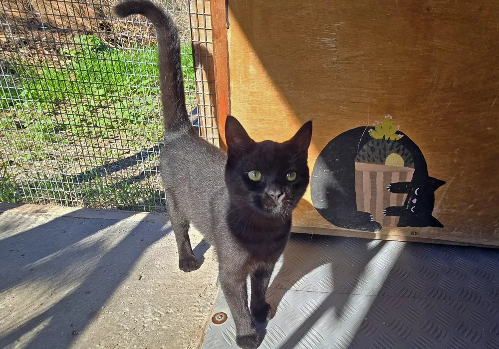 Puma, Nike and Fila were rescued from neglect in September 2025 and are learning to put their traumas behind them. All three were in poor condition on arrival and needed regular anti-fungal treatment. All-black Puma remains a little shy but is making slow and steady progress. His tortie sister Nike is the braver of the two around humans. Their friend Fila is underweight for her age and will probably always be a small cat. Despite this, she’s a bold little powerpack, always keen to play-fight with her two pals and defend her food! We’re confident that this little trio will continue to improve and will be well enough to be adopted in 2026.