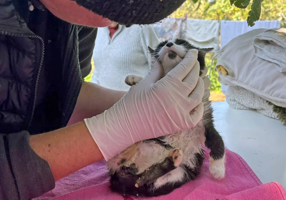 Black-and-white Luke tries to be a ferocious lion and hisses at you when you approach him. But it’s really just a defence mechanism; after all, everything must be so new and strange! Deep down, he is learning to love cuddles and is becoming a bit of a softie. When he arrived, Luke had severe diarrhoea, fleas and ticks, and was very dirty. The severity of his diarrhoea meant that our volunteers had to bathe him regularly to keep him clean. His condition is improving gradually and with special food and supplements, we are hopeful he will get stronger and stronger. Luke also has a fungal infection, a common problem with kittens, so he is being treated every three days with anti-fungal spray. Sadly, due to the fungus being highly contagious, Luke has to be kept separate from his beloved Luna, but we will reunite them as soon as it’s safe to do so. They seem to have formed a strong bond and look out for each other!